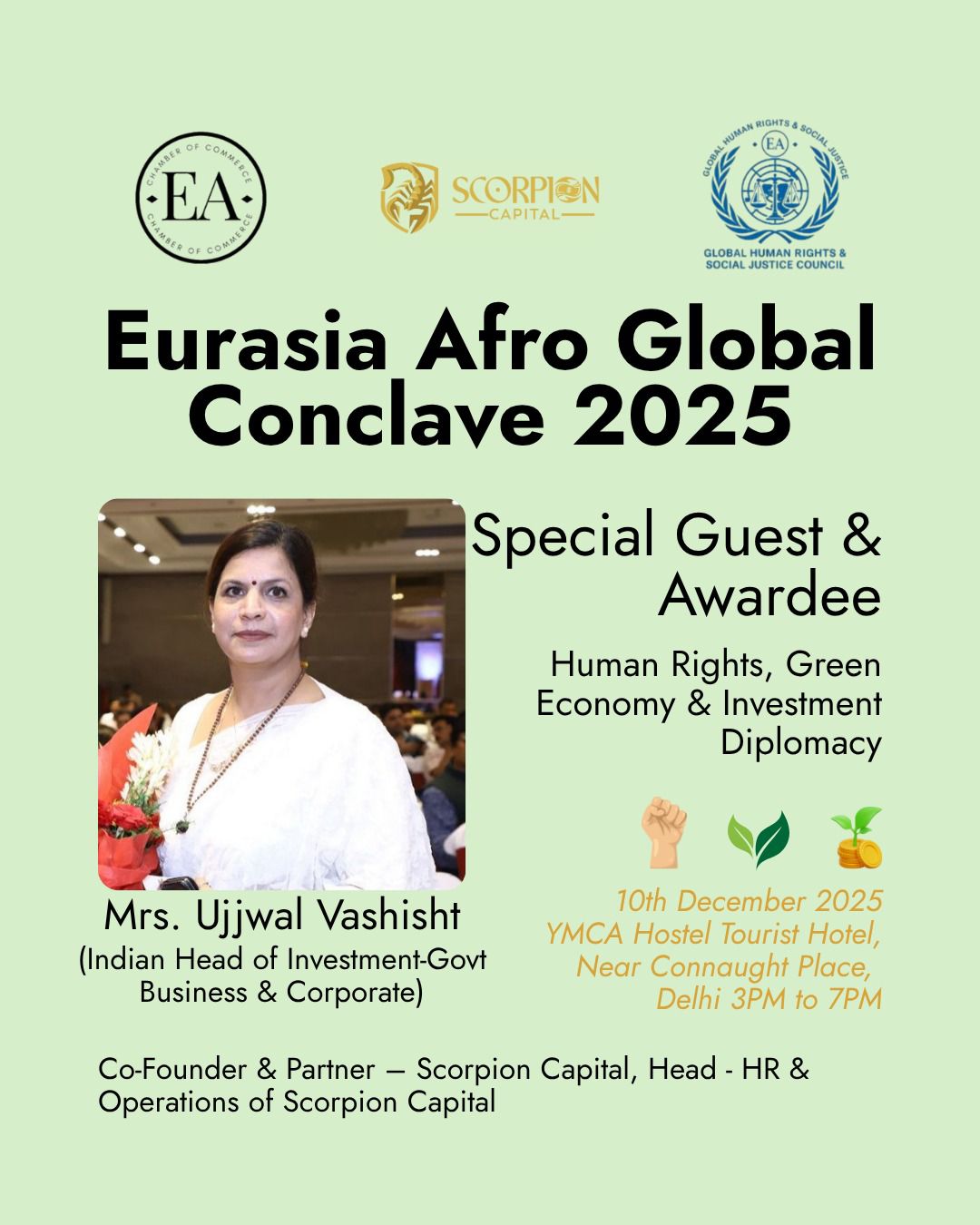 Eurasia Afro Global Conclave 2025 Special Guest & Awardee Human Rights, Green Economy & Investment Diplomacy